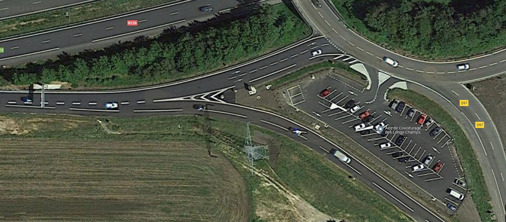 La zone de covoiturage est située 15 mêtres après l'entrée sur le rond point.